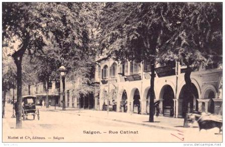 Đó là tình hình chung của thành phố Saigon đầu thế kỷ 20. Trở lại chuyện nhỏ, “tiểu tự sự” (“petit recit”), về con đường Catinat. Bắt đầu từ bến Bạch Đằng (“quai Francis Garnier”), chúng ta thử trở lại thời gian ở thập niên 1900 đầu thế kỷ 20, cách đây khoảng 100 năm và đi dạo từ đầu đường cho đến cuối đường chấm dứt ngay quảng trường Nhà thờ Đức Bà để quan sát hoạt động thương mại và đời sống của người xưa ở con đường nổi tiếng này của thành phố Saigon.