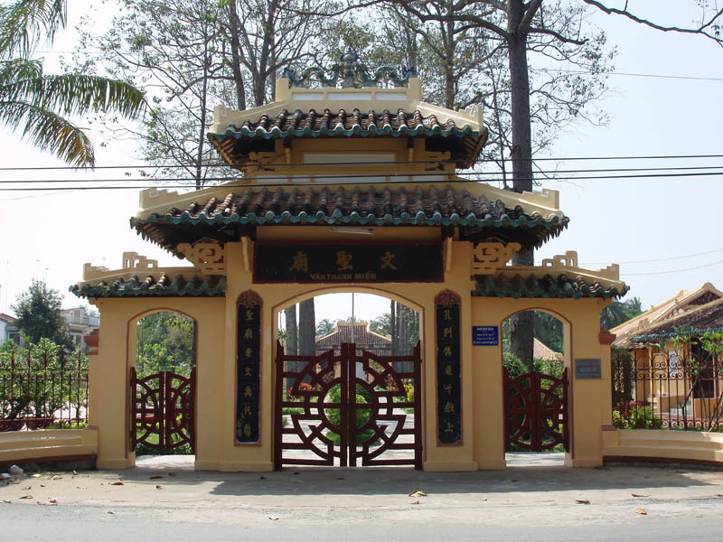 Văn Thánh Miếu được Đề Học Nguyễn Thông xây cất để thờ Đức Khổng Tử và các bậc hiền triết. Khởi công từ năm 1864, Văn Miếu được hoàn tất vào năm 1866. Văn Thánh Miếu được ngăn làm ba điện. Chánh điện thờ Đức Khổng Tử, với hai bên Tả Ban và Hữu Ban thờ Tứ Phối và Thập Triết. Hai điện nhỏ hai bên gọi là Tả Vu và Hữu Vu, thờ Thất Thập Nhị Hiền. Điện thứ ba gọi là Văn Xương Các nằm gần cổng. Nơi đây trên lầu thờ Văn Xương Đế Quân, dưới lầu thờ Võ Trường Toản và cụ Phan Thanh Giản.