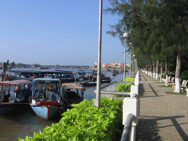 Sau mấy tiếng đồng hồ lang thang, sự mệt mỏi đã thúc dục tôi phải tìm một chỗ nghỉ chân, uống nước. Hoàng hôn thật sự đã biến mất, cái nóng rát buổi chiều đã được thay bằng làn gió dễ chịu, thoáng mát của trời đêm. Hàng cột đèn đường đã bật sáng nhưng cũng chỉ đủ tạo ra vẻ mù mờ của không gian. Những hàng quán lưu động trên những chiếc xe thô kệch cùng những chiếc bàn, chiếc ghế thấp lè tè được bầy la liệt trên lề đường, dọc theo bờ sông. Vài ngọn đèn dầu được đặt trên những chiếc ghế đẩu chiếu ra những ánh lửa bập bồng theo làn gió thổi. Trong cái bóng tối mông lung nhập nhèm đó. Tiếng cười đùa, cụng ly, mời nhau uống rượu từ những nhóm khách ăn nhậu bao quanh những chiếc bàn đầy đồ ăn tạo ra sự ồn ào của một nơi ăn nhậu. Hoạt cảnh đó là bức tranh độc đáo rất giống nhau mà người ta tìm thấy ở hầu hết các thành phố miền nam sông nước Cửu Long, nơi mà thực phẩm chẳng bao giờ thiếu thốn.