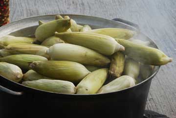Cơm nước no nê xong, còn nồi bắp mới luộc nóng hổi. Tới mùa bắp non, mỗi khi muốn ăn, người trong nhà “gợi ý” thì Cúc lặn lội ra rẫy xa gần chục cây số, chặt một bao đem về. Trái bắp nếp to tròn hột đều bóng loáng, ngọt lừ dẻo quẹo, dù no đến đâu hoặc mắt đã dính híp, cũng không thể từ chối. No dồn đói ép. Rồi vừa ăn vừa… ngủ.