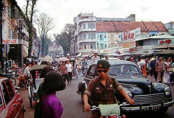 Sàigòn đặc biệt vì có phố không vỉa hè, thí dụ đoạn phố Đề Thám trước dãy nhà cũ đối diện với hông nhà thờ Tin Lành.
