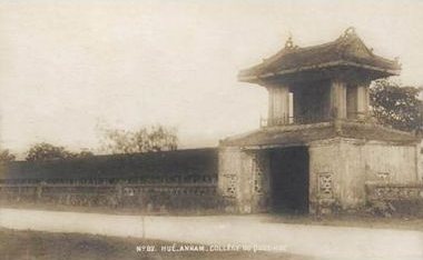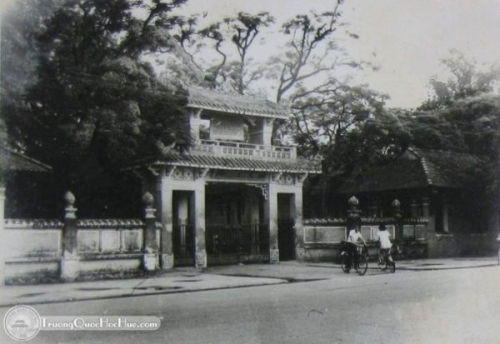 Cổng trường Quốc Học ngày thành lập tầng trên có gác chuông