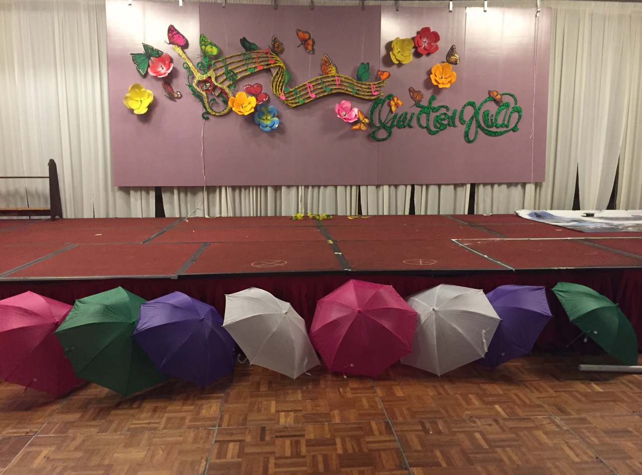 Sân khấu được thiết kế công phu bởi bàn tay khéo léo của Kiến Trúc Sư Nguyễn Cao Khải với sự trang nghiêm của bàn thờ Tổ Quốc, sự lãng mạn của những cách bướm chập chờn và sự thanh tao trên những cung bậc trải dài từ trái sang phải, tạo nét hài hòa làm nổi bật chủ đề của đêm dạ tiệc "Giai Điệu Xuân - Nhớ Sài Gòn".