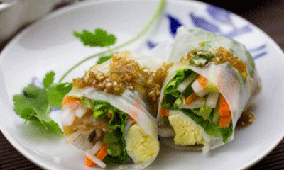 Bắp cải nhúng nước sôi, bỏ phần cọng cứng. Bắp non, su su, cà rốt luộc chín, cắt khúc dài khoảng 5cm. Đậu hũ cắt như rau củ. Trải lá cải ra, cho rau củ, đậu hũ lên cuộn lại, cột bằng bông hẹ luộc. Chao giằm nát, nêm vừa ăn, cho bơ đậu phộng vào trộn đều, chấm với rau cuộn.