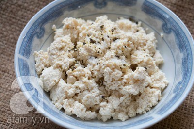 Đậu phụ bạn cho vào tấm khăn sạch và bóp nhuyễn.