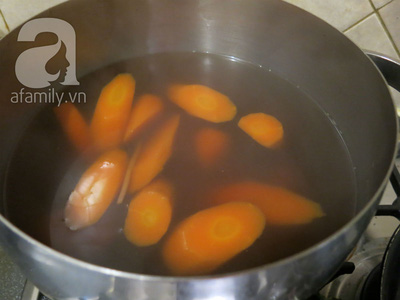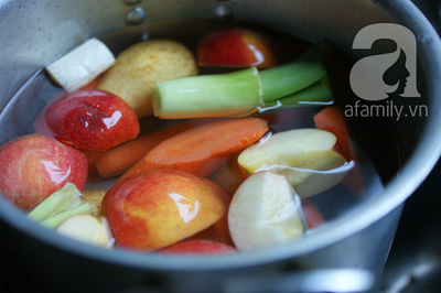 Phần nước dùng: dùng củ cải đỏ (hoặc cà rốt), tỏi tây, táo, lê hay bất cứ loại rau củ nào bạn thích để nấu nước dùng.