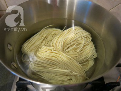 Mì đem luộc khi nào chín mì nổi lên thì vớt ra cho qua nước lạnh, sau đó cho qua nước nóng lần nữa cọng mì sẽ rời ra không dính bết vào nhau ngay cả khi cọng mì nguội, lạnh đi.