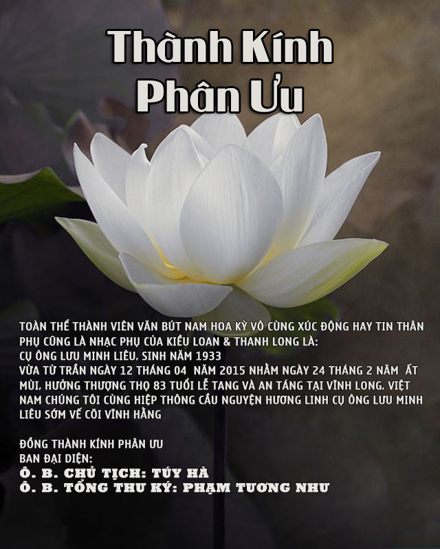 Văn Bút Nam Hoa Kỳ Thành Kính Phân Ưu Cùng Kiều Loan & Long Nguyễn