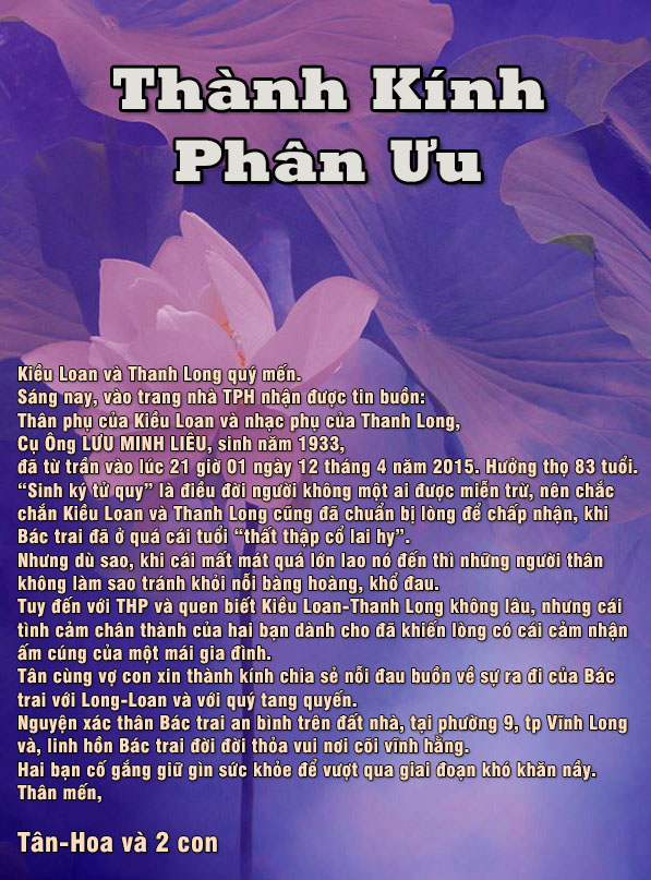 Cung Trầm Thành Kính Phân Ưu Cùng Kiều Loan & Long Nguyễn