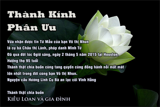 Kiều Loan Thành Kính Phân Ưu Cùng Bạn Võ Thị Nhun