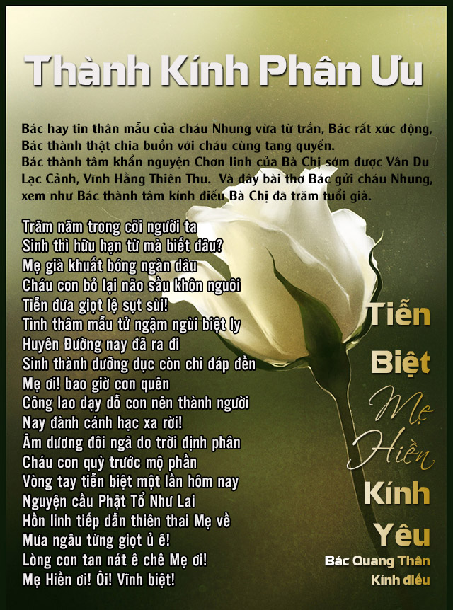 Bác Quang Thân Chia Buồn Cùng Cháu Nhung (Lê Quang) & Tang Quyến